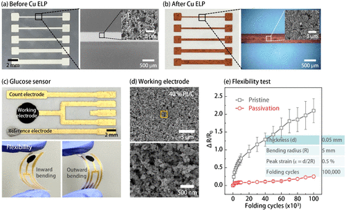 Текстурированная поверхность, обработанная лазером, значительно увеличила площадь контакта с глюкозой, что существенно повысило способность обнаружения. Эта технология позволяет наносить покрытие непосредственно на гибкие пластиковые подложки без необходимости высокотемпературной обработки или вакуумного оборудования. Кроме того, для изменения формы электрода необходимо лишь изменить траекторию лазера на компьютере.